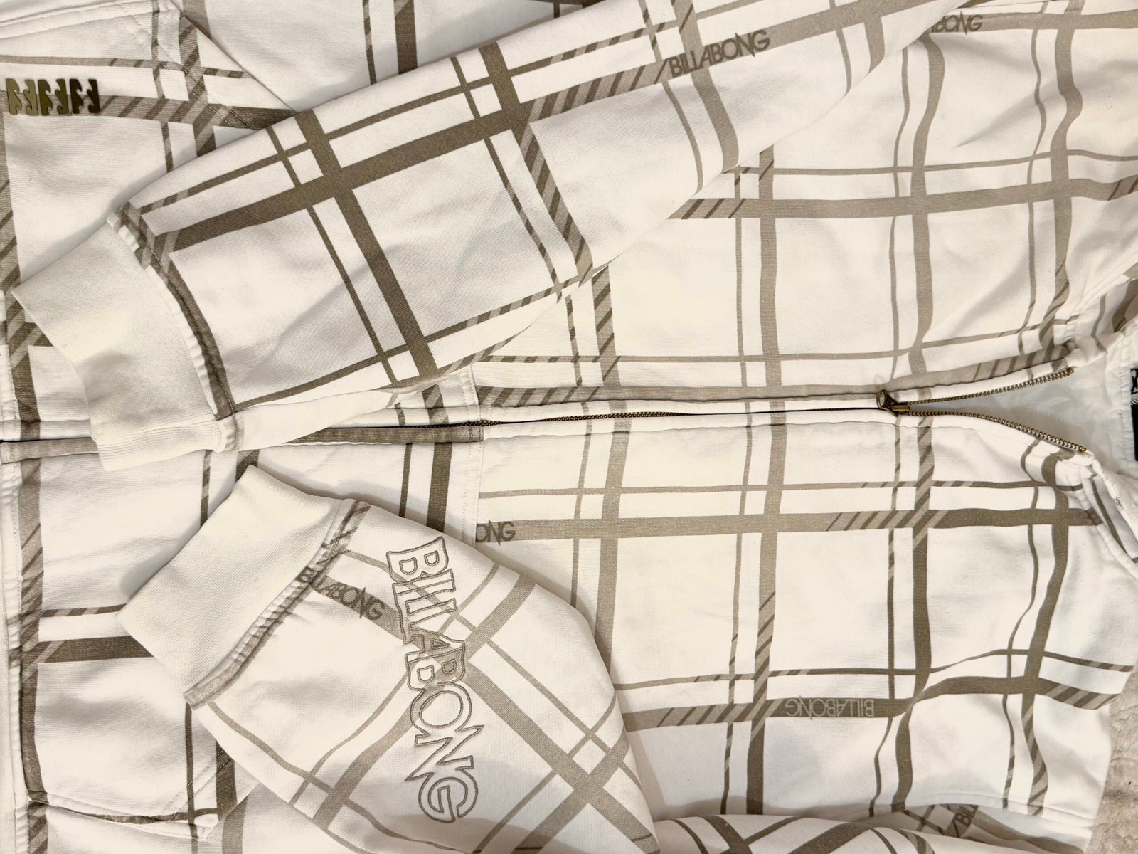 Skate’owa bluza z kapturem na zamek od Billabong. Stylowa krata w odcieniach szarości i bieli, duże logo na rękawie i kieszeni. Idealna dla fanów luźnego streetwearu i deskorolki.