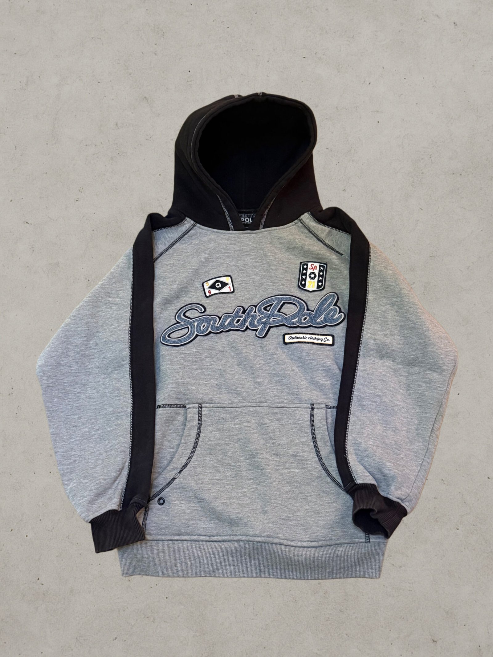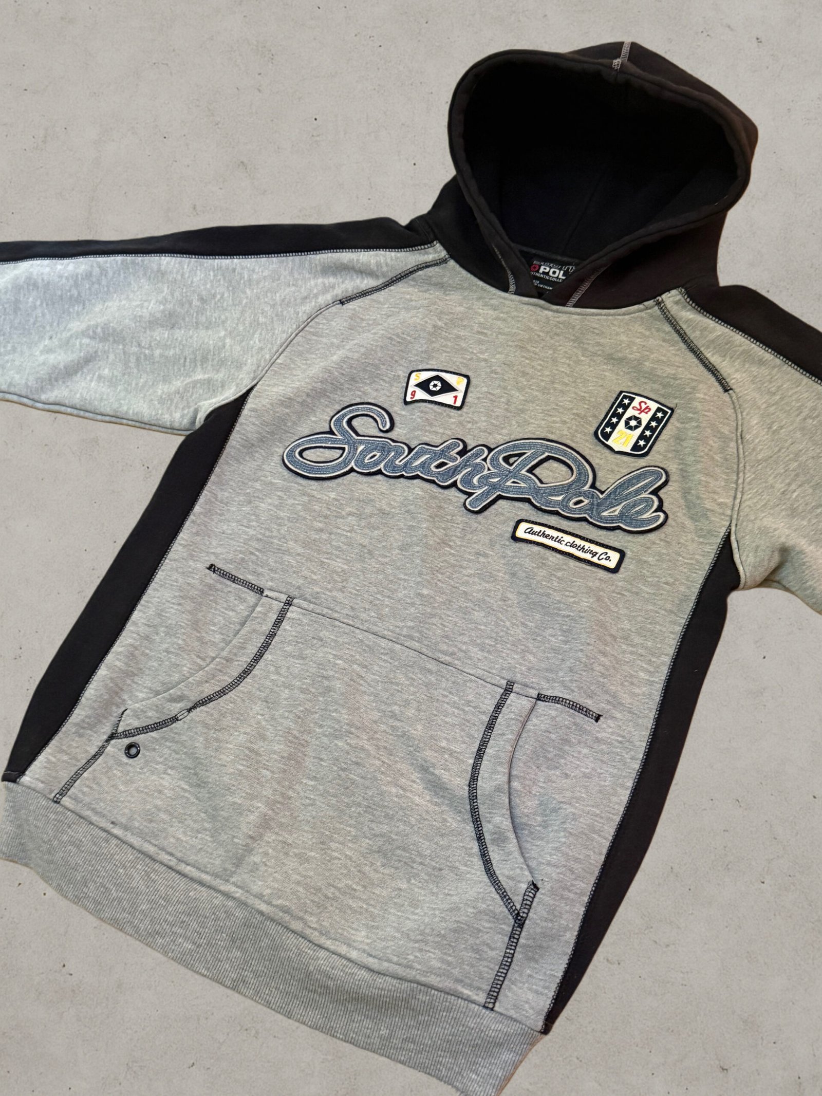 Stylowa bluza z kapturem od Southpole, idealna na co dzień. Połączenie szarości i czerni nadaje jej nowoczesny, streetwearowy charakter. Haftowane i naszywane aplikacje southpole oraz detale w sportowym klimacie sprawiają, że bluza wygląda mega cool
